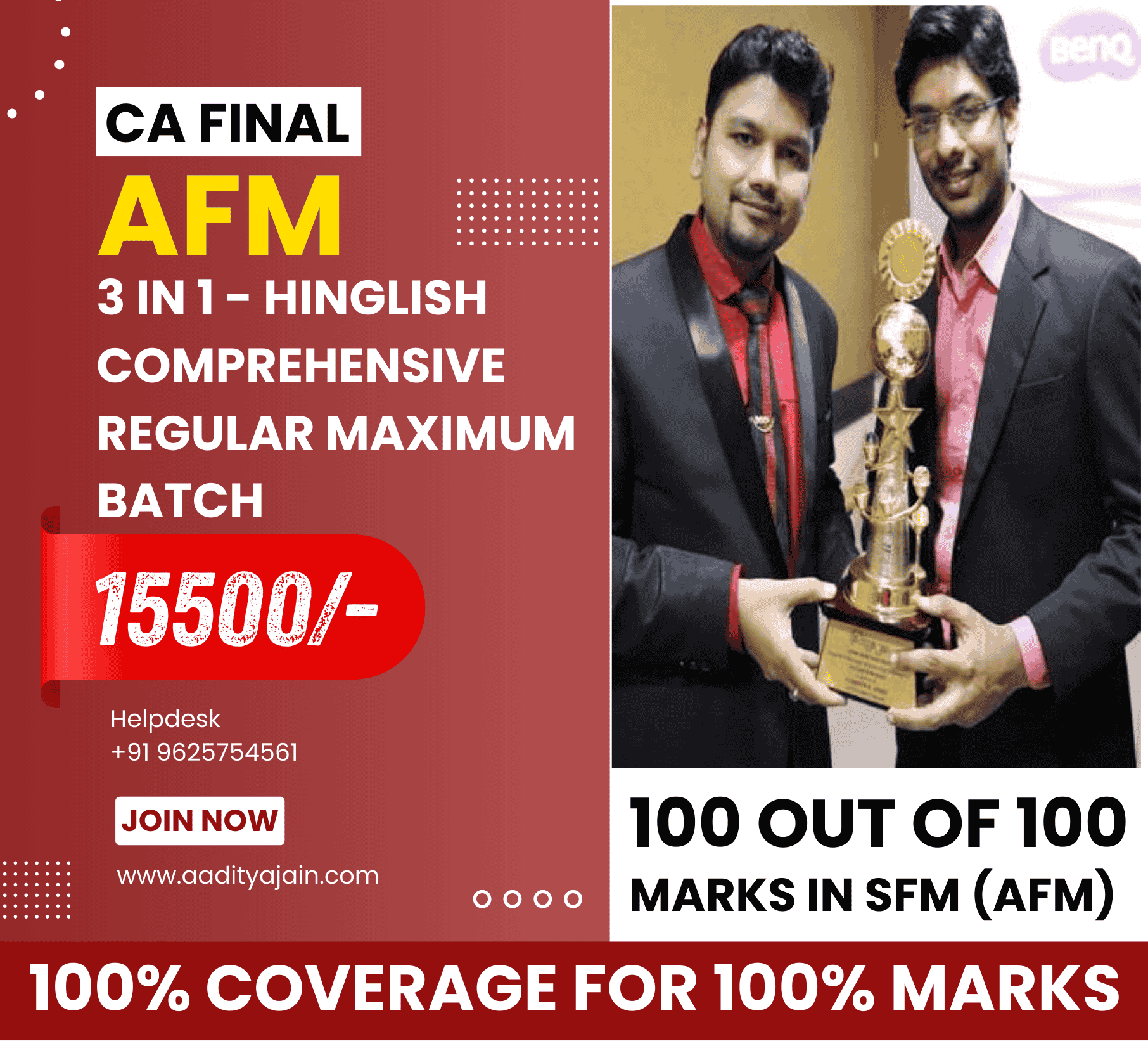 AFM in CA final is a practical subject. You must have a teacher to clear you all the concepts.Aditya Jain sir’s way of making you understand the concepts & linking it with the current scenarios will develop a desire of making a career in Finance. Once you took his classes, you won’t feel CA Final AFM is difficult anymore.