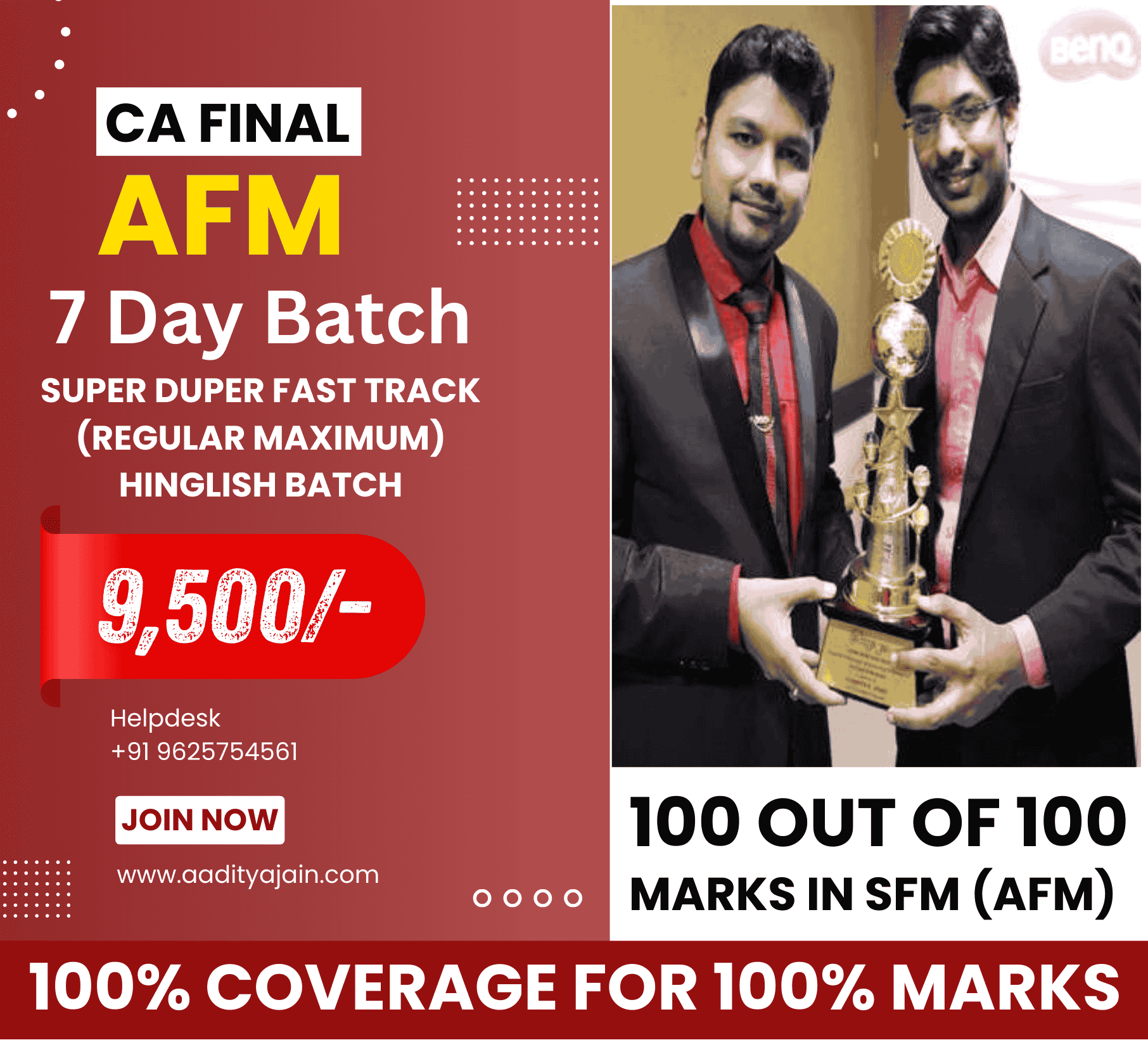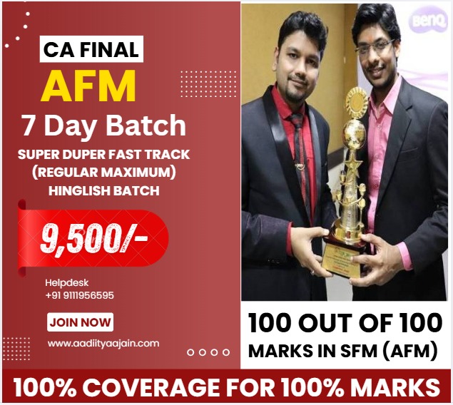 Aaditya jain sir super duper fast track AFM batch covered concepts sharply and efficiently. The seven-day plan really boosted my revision and exam confidence. Best for last minute revision. Truly a game-changer it is.